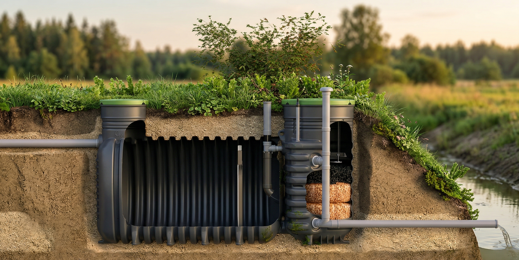Eelmonteeritud väikepuhasti süsteem, mis on koheseks paigalduseks valmis.