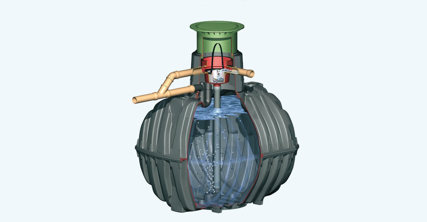 Sademeveevesi juhitakse maja allavoolutoru kaudu mahutisse. Integreeritud filtritehnoloogia muudab paigaldamise väga lihtsaks ja peaaegu hooldusvabaks. Seejärel jaotatakse vihmavesi nutika pumba kaudu aeda.