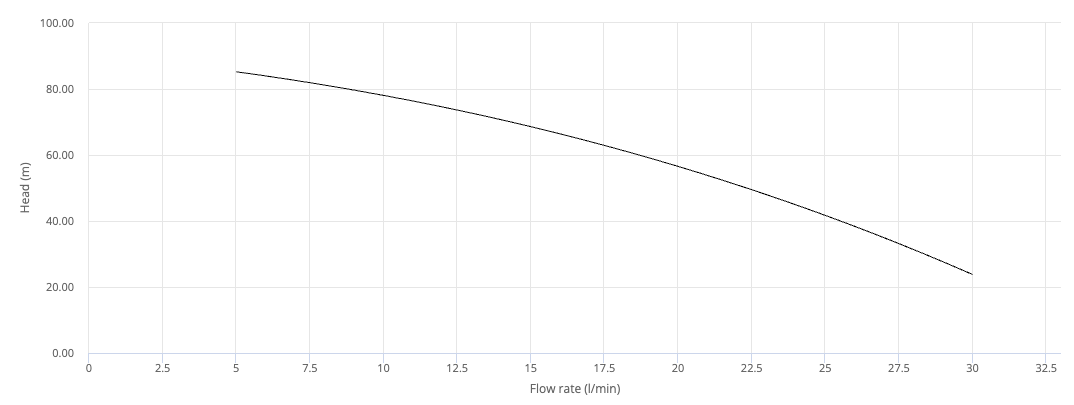 kvaliteetne puurkaevupump, kus lubatud liiva sisaldus vees on – 150g/m3 kohta. Tööratta materjal: tehnopolümer. Sobib puhta vee pumpamiseks. Mudel: 3SRm 1/21 Võimsus: kW: 0.37 HP: 0.50 Vooluhulk Q [l/min]: 90 l/min Paiskamiskõrgus H [m]: Maksimaalselt 30m Kaabel: 1.5 m