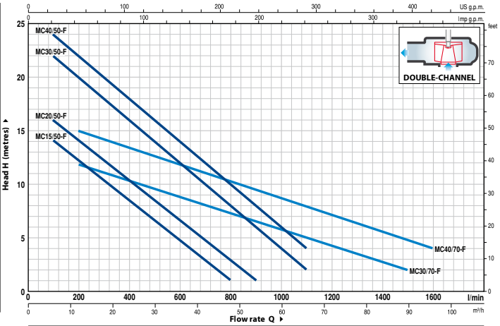 MC-F seeria pumbad on valmistatud tugevast ja vastupidavast valualusest rauast, mis on vastupidav kulumisele ja pikaajalisele kasutusele.